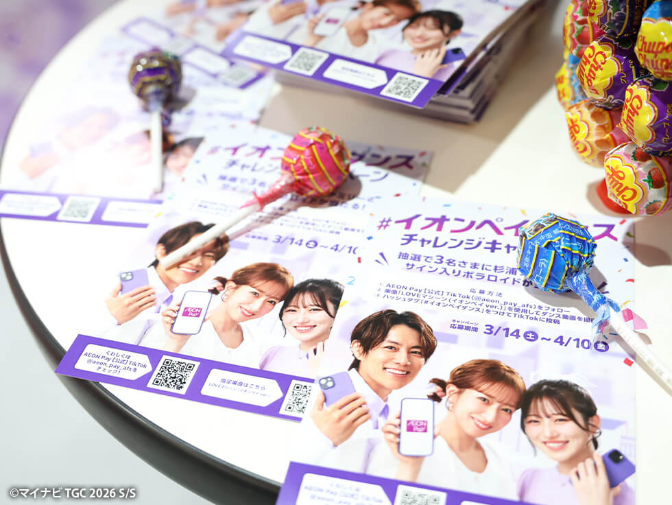 TGC CARDブースでは、AEON Payアプリを登録するだけで、池田美優とのチェキ撮影券や、池田美優コラボアイテムなど、豪華賞品が当たる大抽選会に参加できました!当日の登録でも抽選会に参加できたので、たくさんの方が集まり、大賑わいのブースとなりました♪さらに、TGCの会場でTGC CARDに新規申込みいただいた方には、フル充電してあり、会場でそのまま使える《TGC CARD限定のモバイルバッテリー》がもれなくプレゼントされたので、多くの来場者がTGC CARDに登録しました!