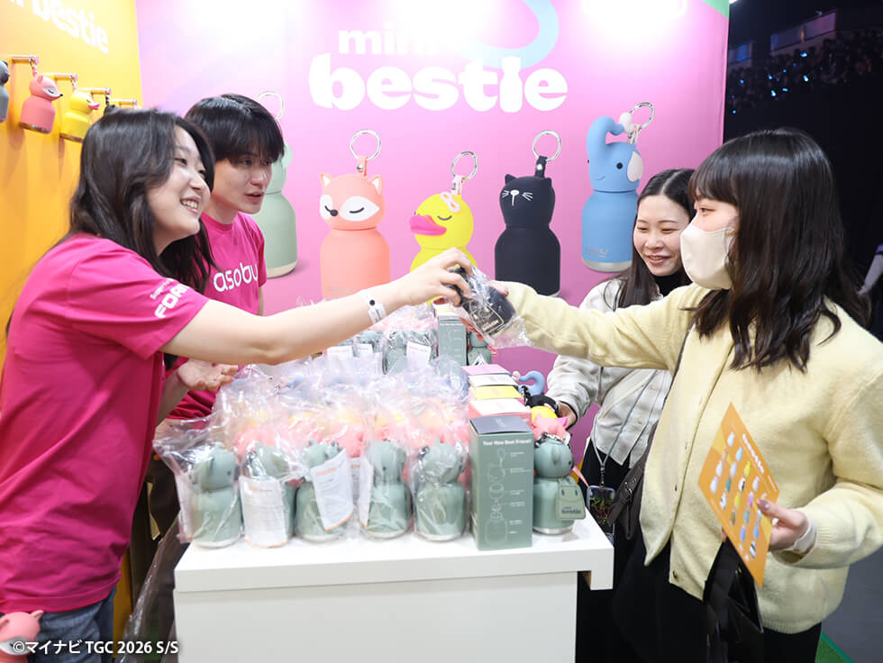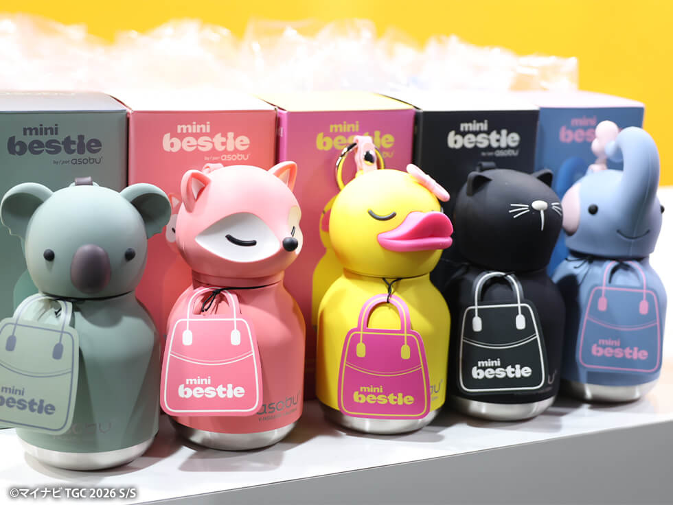 ユニークなデザインで遊び心を追求し、ファッション性と機能性を兼ね備えたasobuから、ミニサイズ&カラビナ付きのチャーム型ボトル「mini bestie」が登場!公式Instagramフォローで「mini bestie」やTGC 2026 S/S限定オリジナルグッズが当たるガチャを実施し、終始大賑わい!ブランドの世界観溢れるフォトスポットや「mini bestie」現品展示にも注目が集まり、かわいい♡の声が続出しました♪バッグに付けて一緒におでかけしたくなる、話題のアイテム♡ぜひチェックしてね!