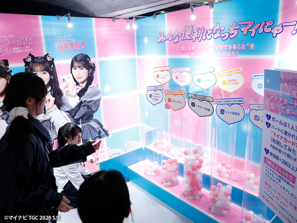 =LOVEが出演する、政府広報キャンペーン「マイナカードの利用促進」のオリジナルPVやCMが視聴できたり、マイナカードの便利さや魅力を楽しく知ることができるゲームを体験できるブースを実施。ゲームをクリアすると=LOVE×マイナちゃんオリジナルノベルティがもらえるとあり、たくさんの来場者が参加しました♡