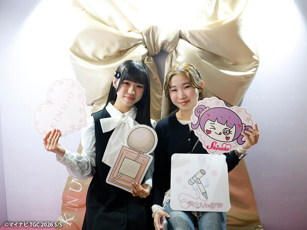 しなこ×Nanami×KINUJOによるトリプルコラボブースがTGC 2026 S/Sに登場!しなこの世界観を再現したかわいいブースやフォトスポットは会場内でもひと際目を引く存在に♡しなこのヘアメイクを担当しているNanamiのサポートのもと、“しなこヘア”づくりを体験できるとあって、終日多くの来場者でにぎわいました♪さらに、しなこによるトークショーも実施され、会場は歓声と熱気に包まれました!
