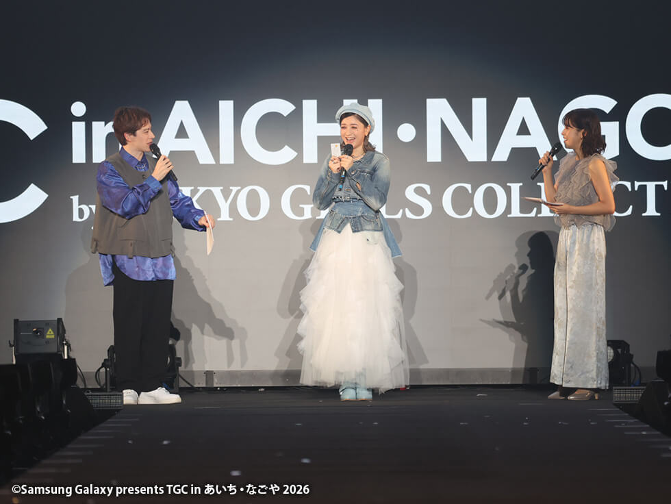20周年という節目を迎えたTGCが、14年ぶりに「あいち・なごや」へ帰ってきました。「TSUMUGU:Design the Next」をテーマに、最新鋭のIGアリーナを舞台に、地域が育んできた歴史や技術と、次世代を担う若い感性、そしてテクノロジーを掛け合わせ、「地域から世界へ」未来をデザインしていきます。MCはウエンツ瑛士と鷲見玲奈の2人が初タッグで務め、息の合った掛け合いで会場の期待感を高めながら、Samsung Galaxy presents TGC in あいち・なごや 2026を盛り上げていきます。