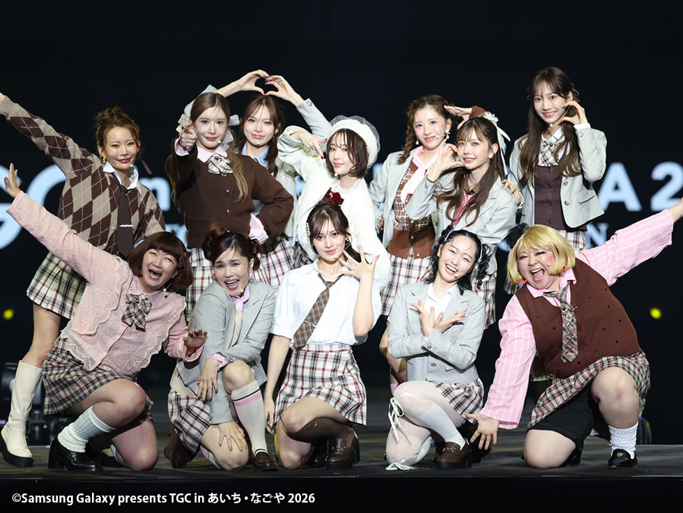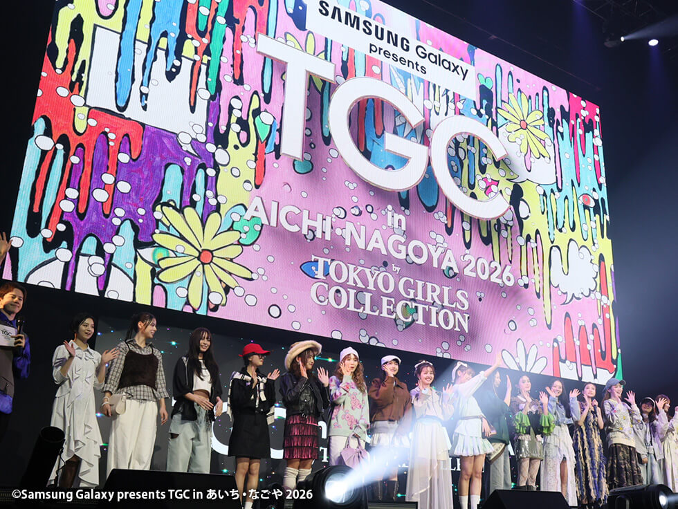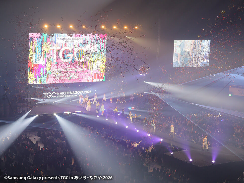 14年ぶりの開催で大いに盛り上がりを見せた『Samsung Galaxy presents TGC in あいち・なごや 2026 by TOKYO GIRLS COLLECTION』もついにフィナーレ。この日ステージを彩った出演者たちが再びステージに集結しました。“TSUMUGU:Design the Next”というテーマのもと、地域の歴史や技術、若い世代の感性、そしてテクノロジーがひとつに紡がれた一日が締めくくられました。笑顔と拍手に包まれながら、華やかな余韻を残して幕を閉じました。