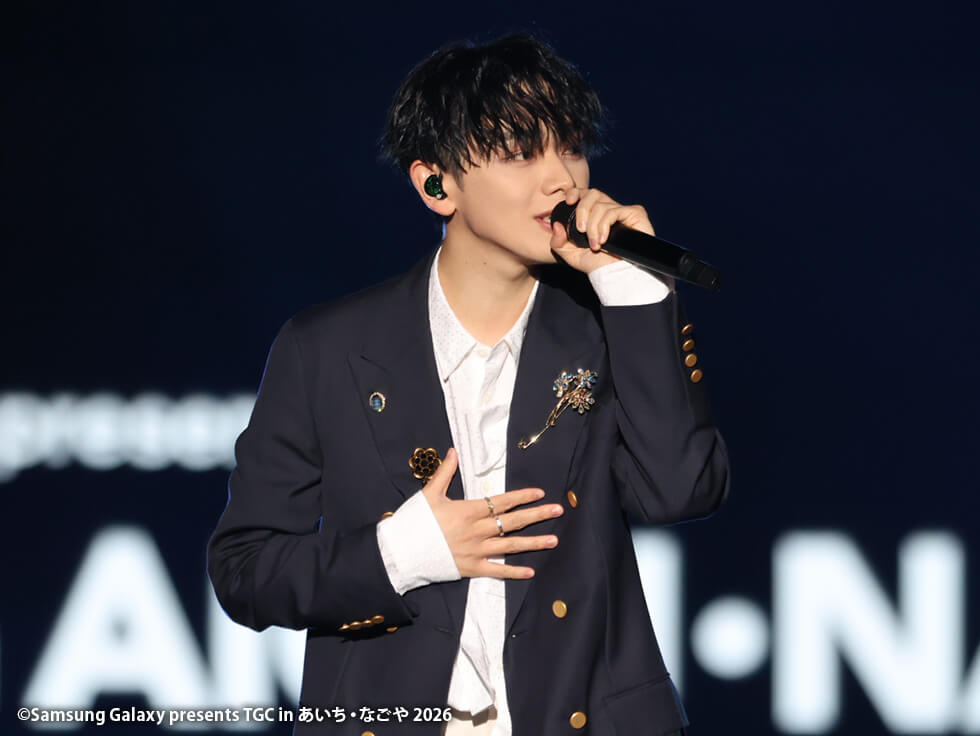 ARTIST LIVEのラストを飾ったのは、愛知県出身で本イベントのクリエイティブアンバサダーを務める岩田剛典(GAN)。『Step to the Moon』で壮大に幕を開け、『Do my thang』では力強いパフォーマンスで会場を引き込みました。続く『MVP』まで、楽曲ごとに異なる表情を見せ、観客を魅了。このステージにあわせて、“愛知の尾州で生まれた繊維”を使用した衣装を自らプロデュース。音楽とファッション、そして地元・愛知への想いが重なり合う、象徴的なステージとなりました。