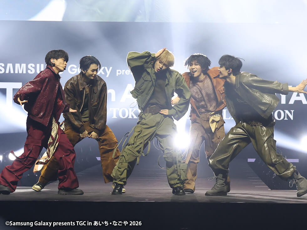ARTIST LIVE 6組目には、華やかなビジュアルと確かな実力を兼ね備えたiznaがTGC初登場。軽快なビートが弾ける『Mamma Mia』で勢いよく幕を開け、『SASS』ではクールで洗練された世界観を披露しました。ラストは人気曲『SIGN』で会場の熱気をさらに高め、力強いパフォーマンスで観客を魅了。多彩な魅力を感じさせるステージとなりました。