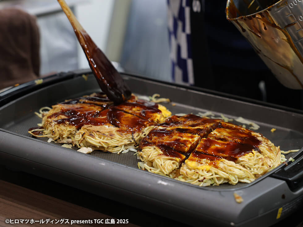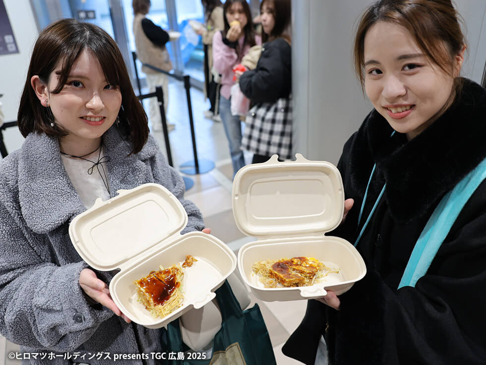 TGC広島の会場に、広島のソウルフード「お好み焼」が登場!ご当地の名店がブースとして出展し、来場者の皆様にアツアツの本格的な広島流お好み焼を提供しました。肌寒さを忘れるほど温まる美味しさは、来場者からも大好評!行列が絶えない人気ぶりで、TGC広島に欠かせない体も心も温まるホットスポットとなりました。
