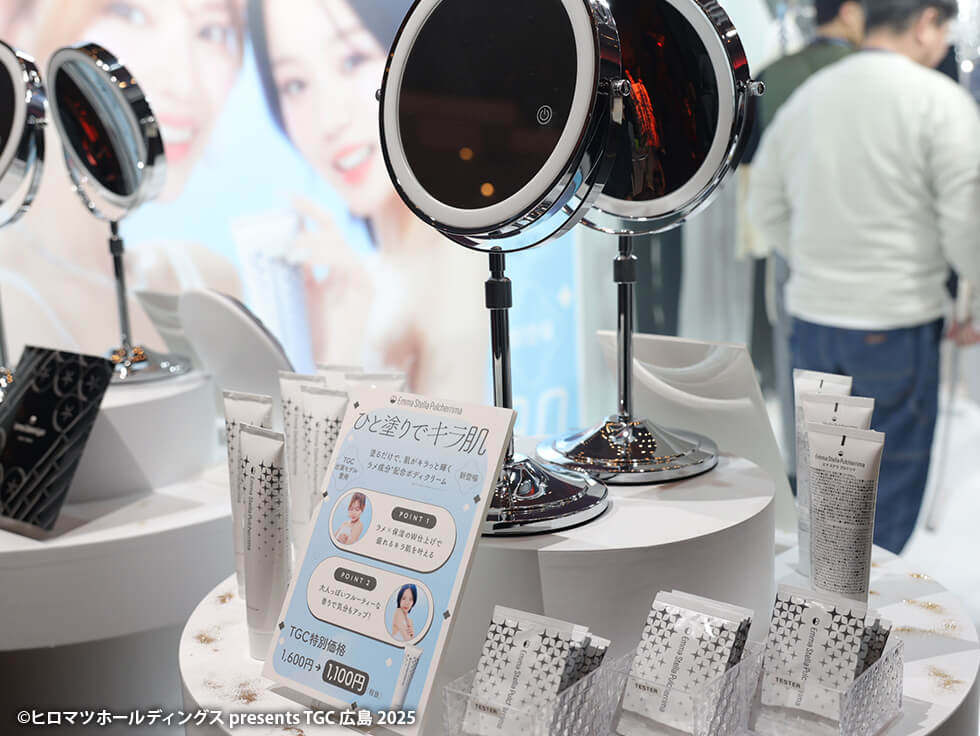 新アパレルブランド「THETA θ」では、上質な素材とシンプルなデザインが多くの方に選ばれ、フォトスポットやハンドミラーのプレゼントが大好評♡ジャパニーズビューティーの新商品、『ラメ入りボディクリーム』と韓国で注目されている『白トマトエキス入りのフェイスマスク』のサンプルプレゼントも大人気で終始大盛況のブースとなりました!