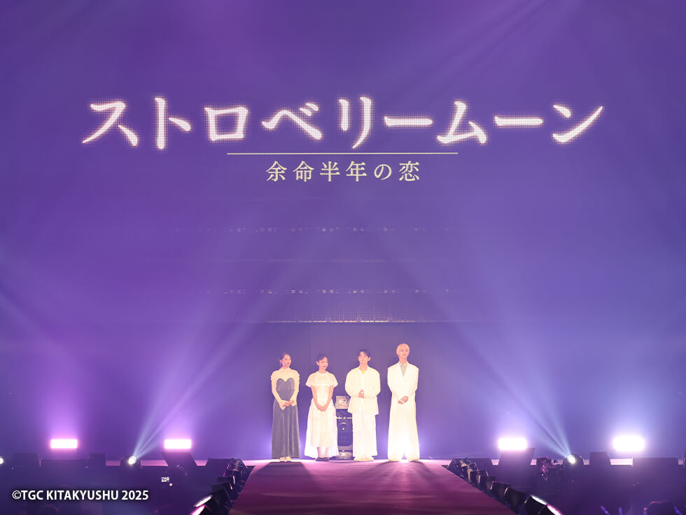来週10月17日に公開を控える映画『ストロベリームーン 余命半年の恋』のスペシャルステージには、“恋が叶う”という6月の満月「ストロベリームーン」の淡い光がランウェイを照らす中、同作品にて長編映画初主演を務める當真あみ、そして齋藤潤、池端杏慈、吉澤要人ら新世代を代表する超豪華俳優陣が華やかに登場し、会場を魅了。トークパートでは、限られた時間の中で、一生分の恋をする同作品の魅力などが語られ、甘く切ない物語への期待とともに、会場はあたたかな余韻に包まれました。
