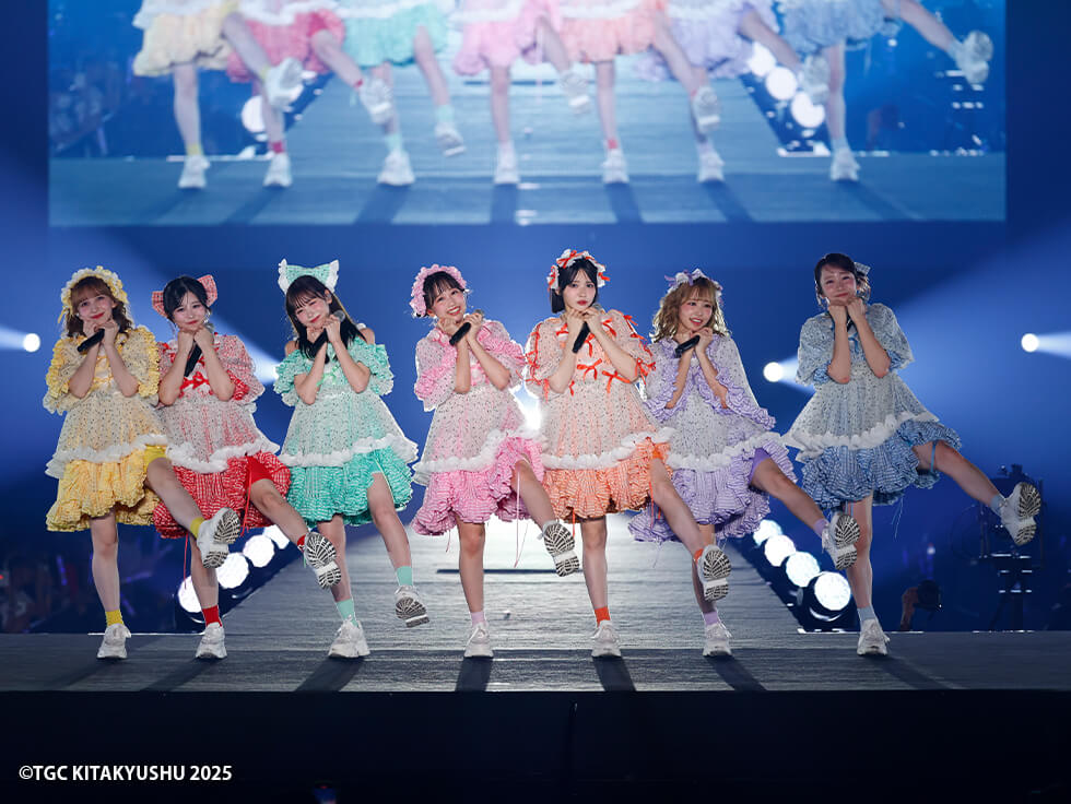 KAWAII LAB.から誕生した、九州を拠点に活動する次世代アイドル・KAWAII LAB. SOUTH。待望の新メンバー3名を迎えた新体制で登場し、FRUITS ZIPPERの『NEW KAWAII』を披露。弾ける笑顔と元気いっぱいのステージで観客を魅了し、会場は温かな歓声と拍手に包まれました。新たなスタートを感じさせるフレッシュなパフォーマンスで、今後への期待が高まりました。
