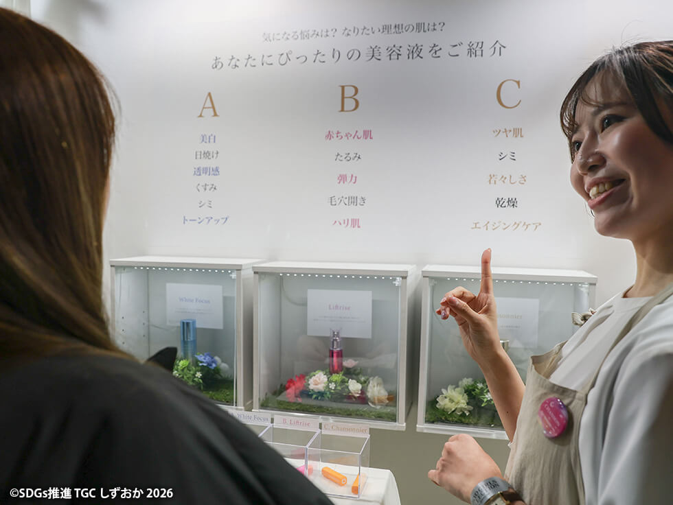 2月11日発売の新商品「ボディマッサージジェル」の体験やシャンソンオリジナルアイテムが当たる抽選会、美容液選びなど今回も大充実なシャンソンスキンケアブースが登場!豪華景品を目がけて開場直後から来場者が殺到する大人気ブースに♡さらに、ゲストとしてシャンソンステージを盛り上げた市川美織が登場!ステージの感想をはじめ、シャンソン商品に関するトークを展開しシャンソン化粧品の魅力を存分に感じていただけるブースとなりました♪